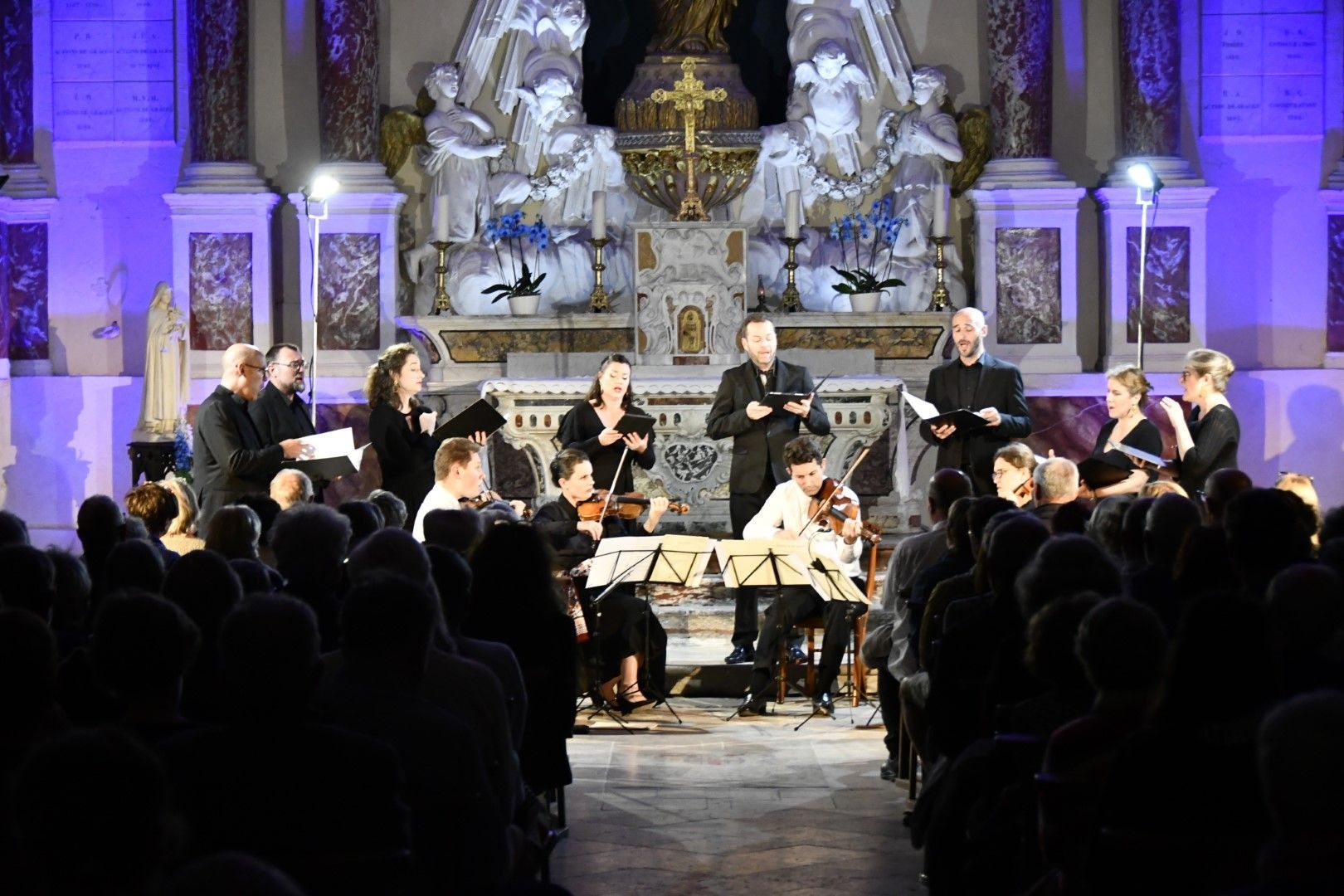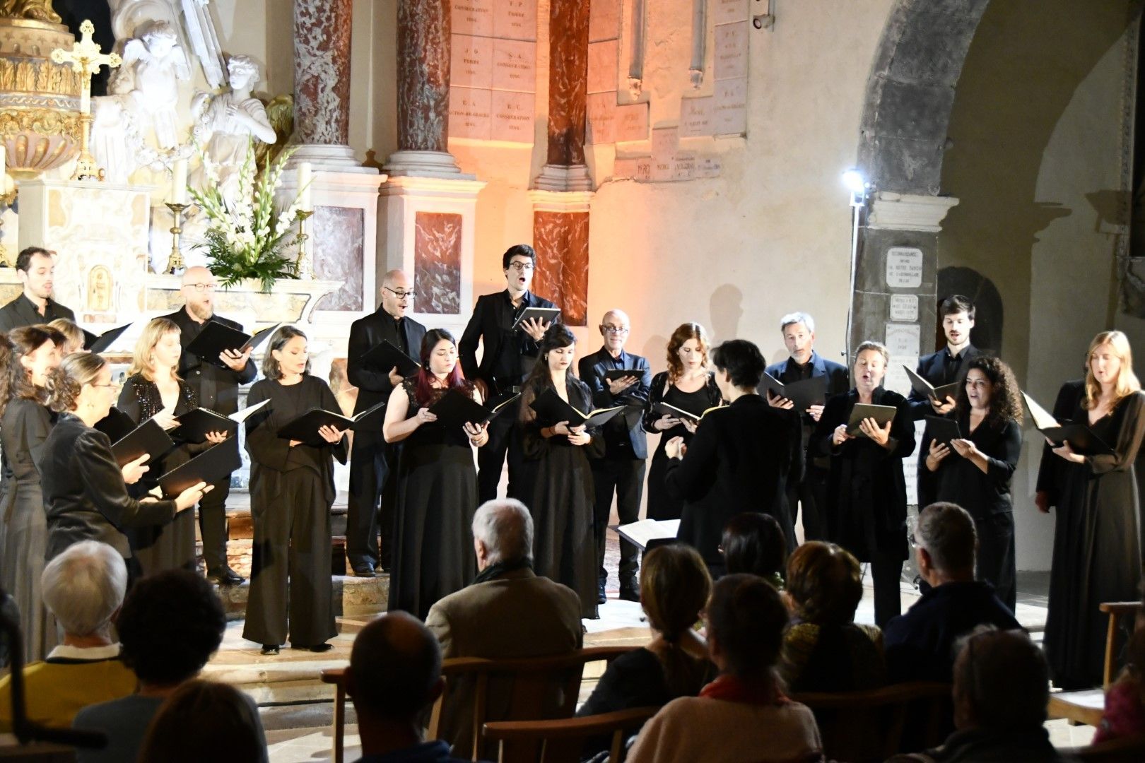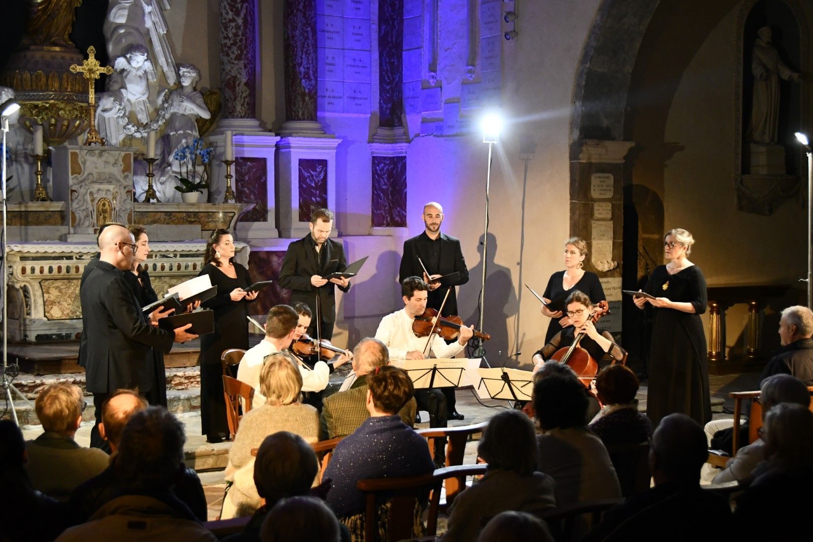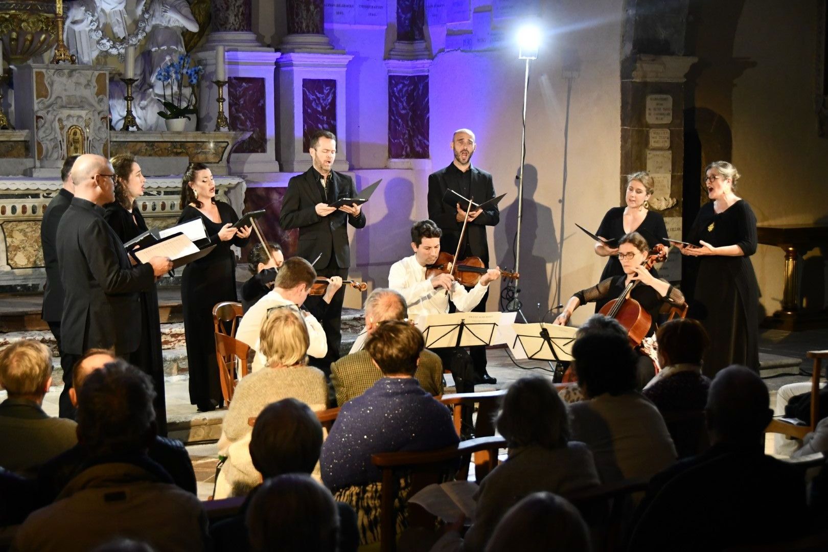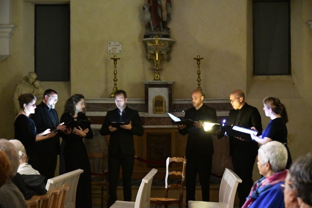 Quel plaisir de retrouver l’ensemble vocal Allégories sous la direction de son jeune chef, Stefano Bernabovi, qui nous avaient enchantés lors de la 1ère édition du Festival avec un très beau programme « Ad Te clamamus » qui explorait la richesse du répertoire marial avec notamment le sublime Stabat Mater de Caldara.