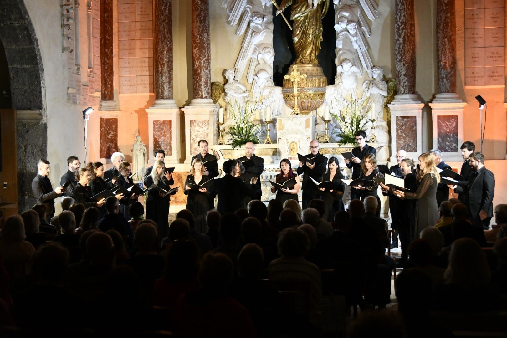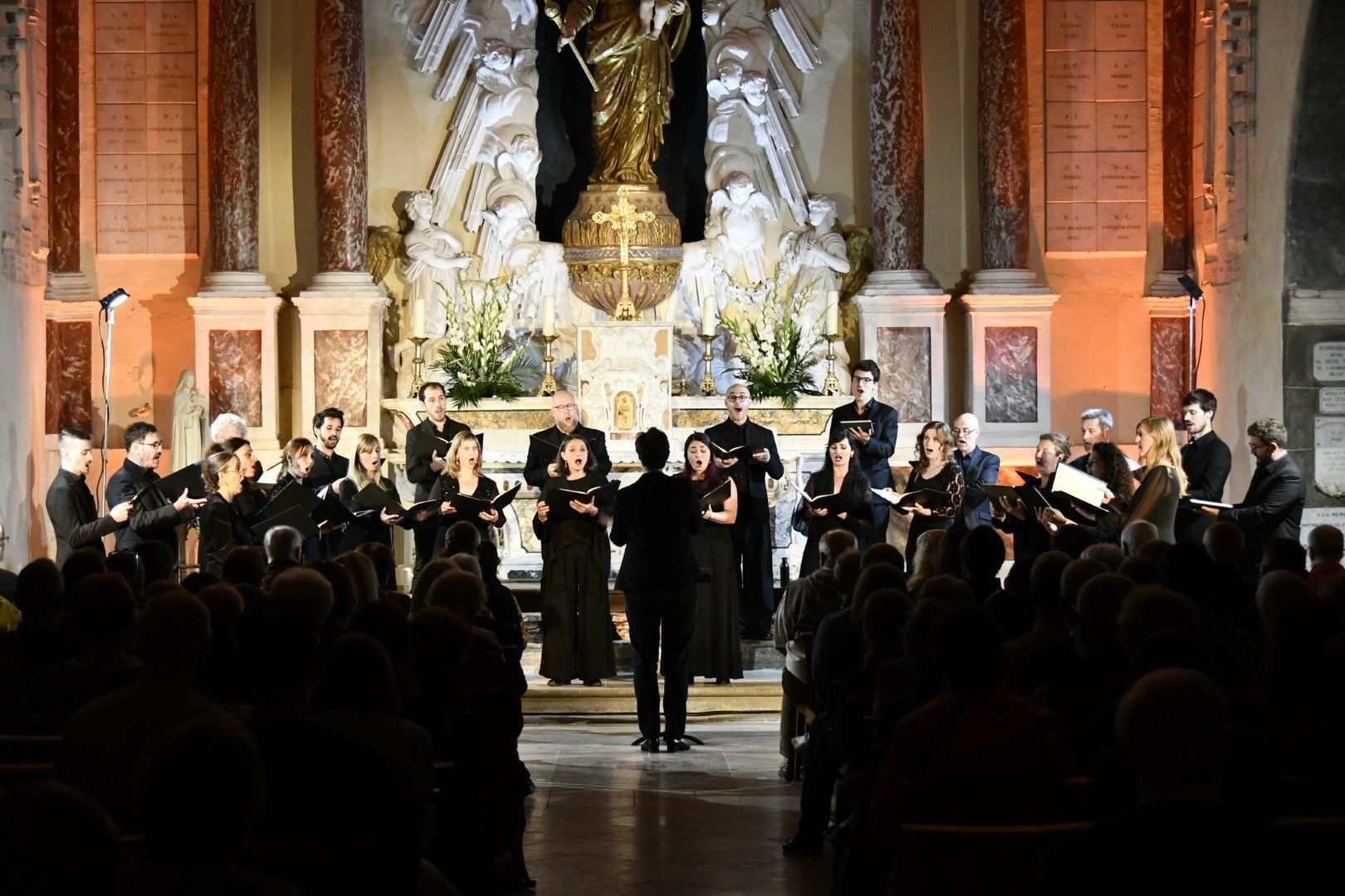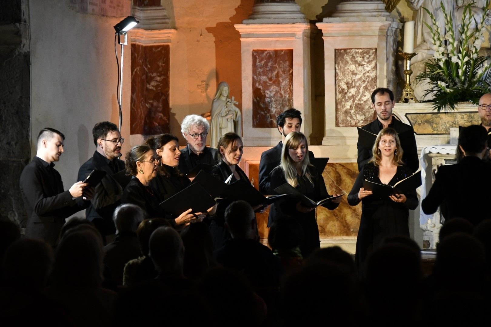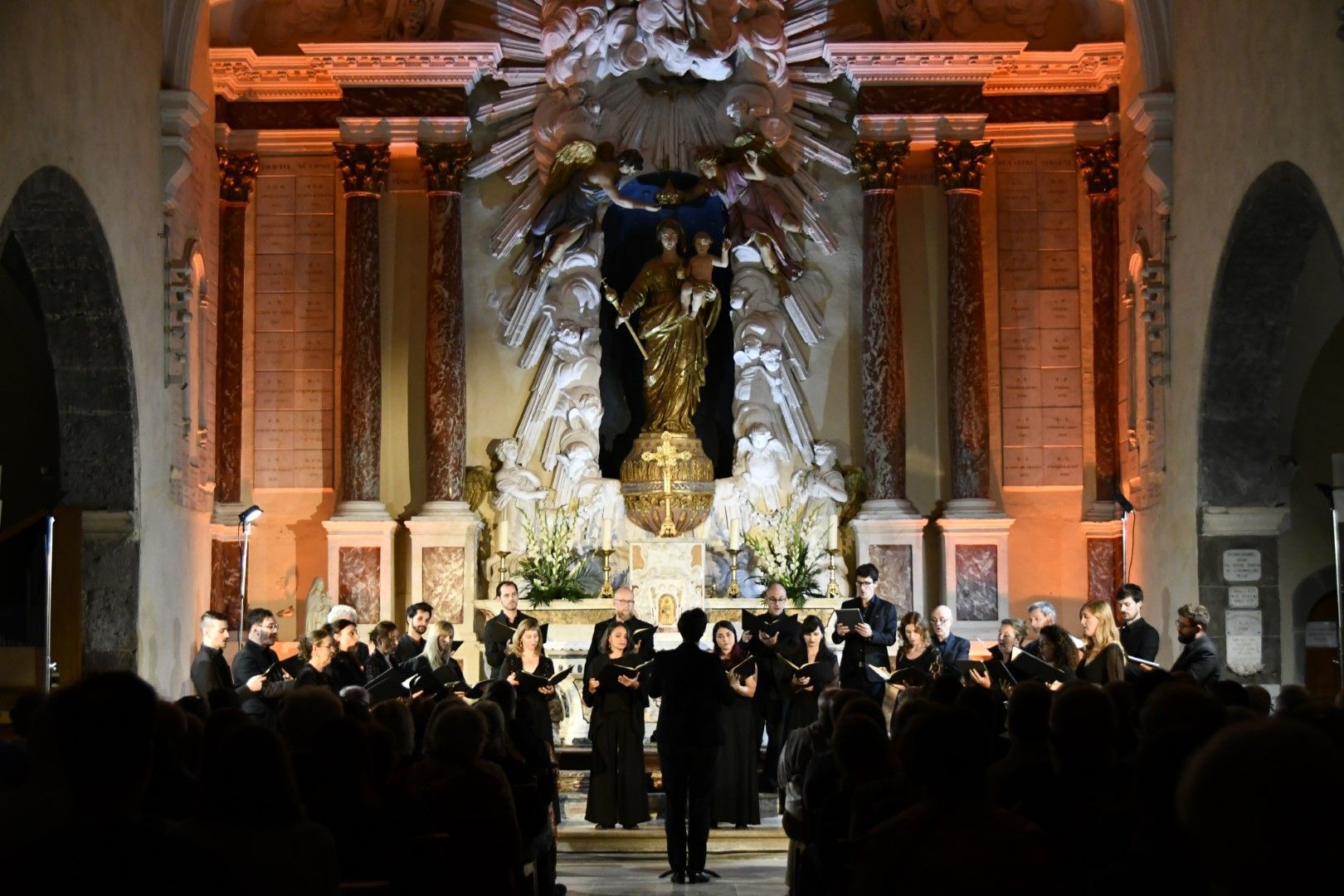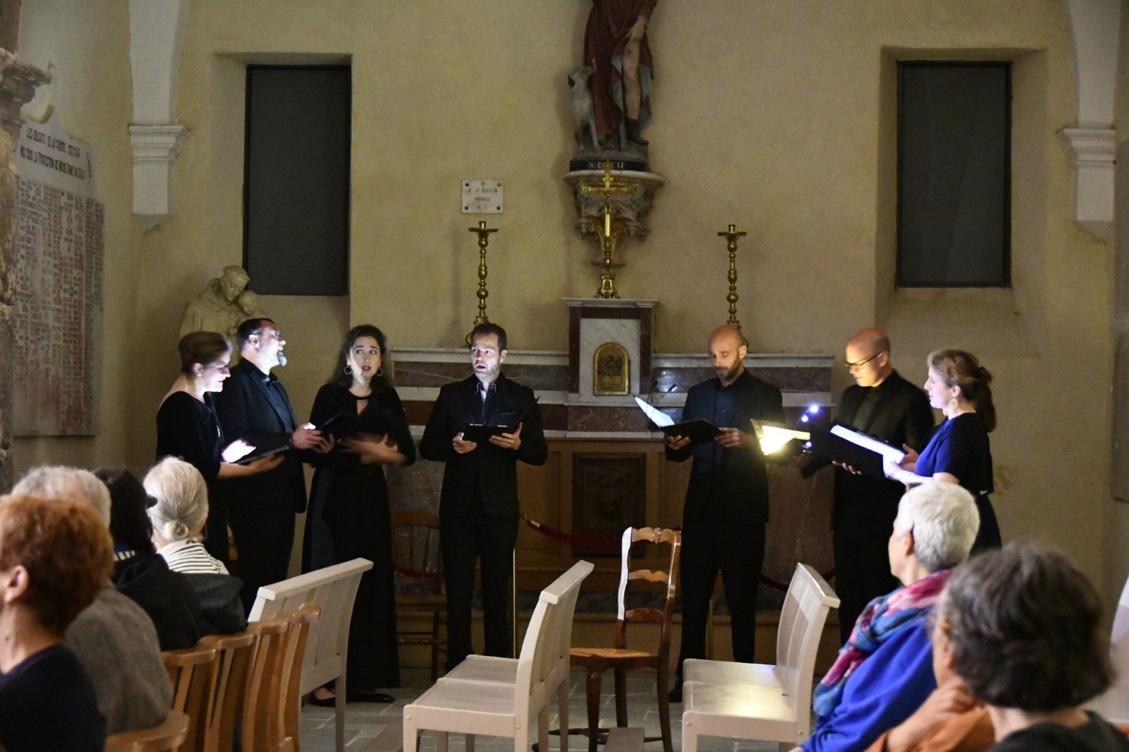 Quel plaisir de retrouver l’ensemble vocal Allégories sous la direction de son jeune chef, Stefano Bernabovi, qui nous avaient enchantés lors de la 1ère édition du Festival avec un très beau programme « Ad Te clamamus » qui explorait la richesse du répertoire marial avec notamment le sublime Stabat Mater de Caldara.