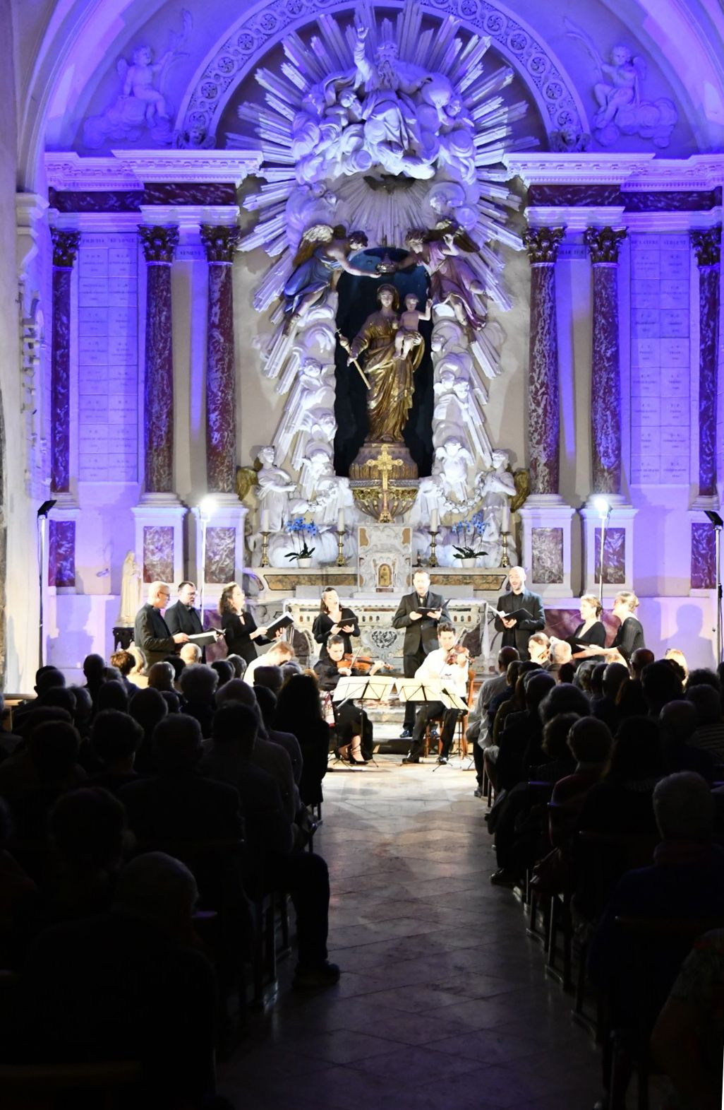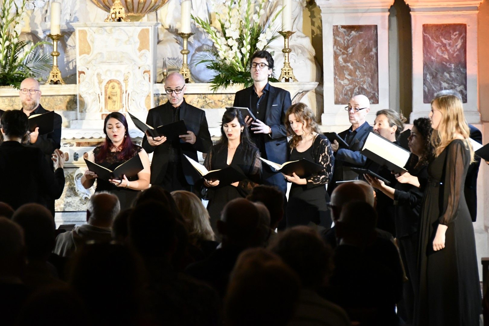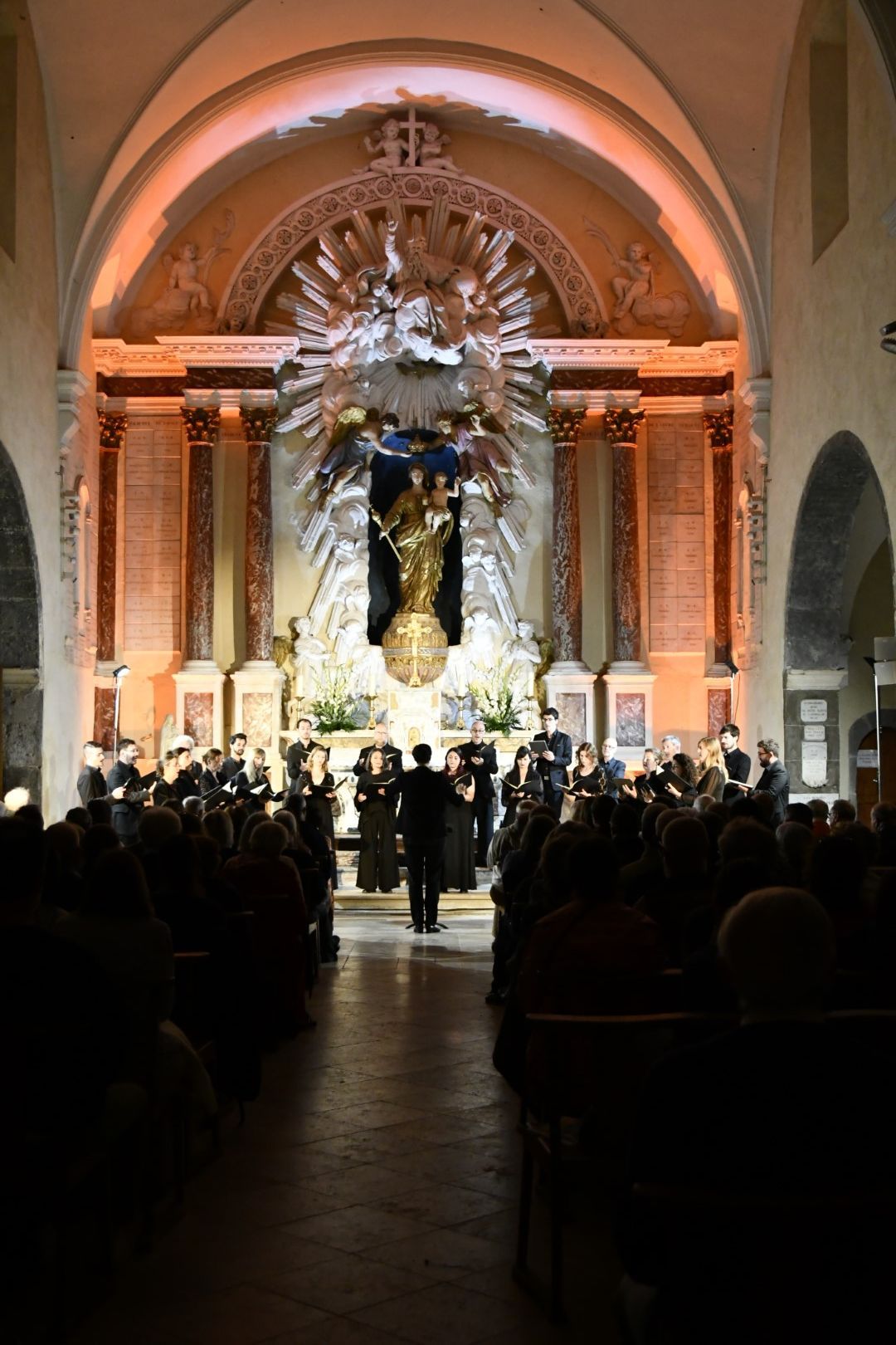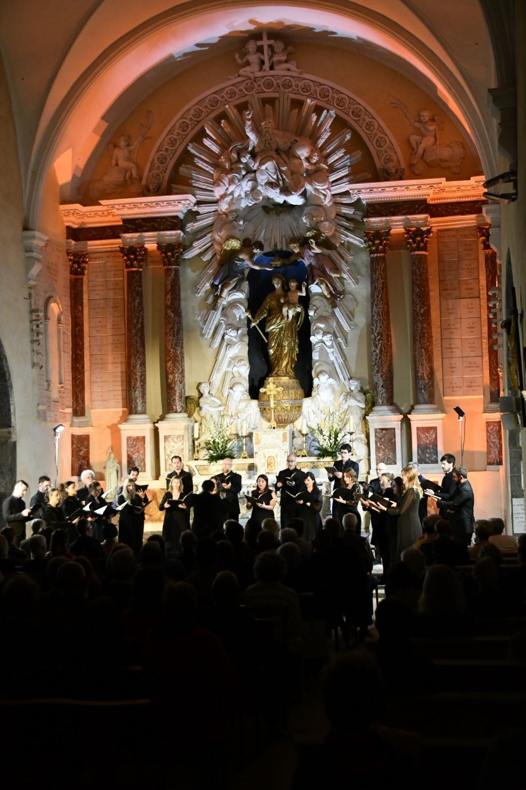 Quel plaisir de retrouver l’ensemble vocal Allégories sous la direction de son jeune chef, Stefano Bernabovi, qui nous avaient enchantés lors de la 1ère édition du Festival avec un très beau programme « Ad Te clamamus » qui explorait la richesse du répertoire marial avec notamment le sublime Stabat Mater de Caldara.