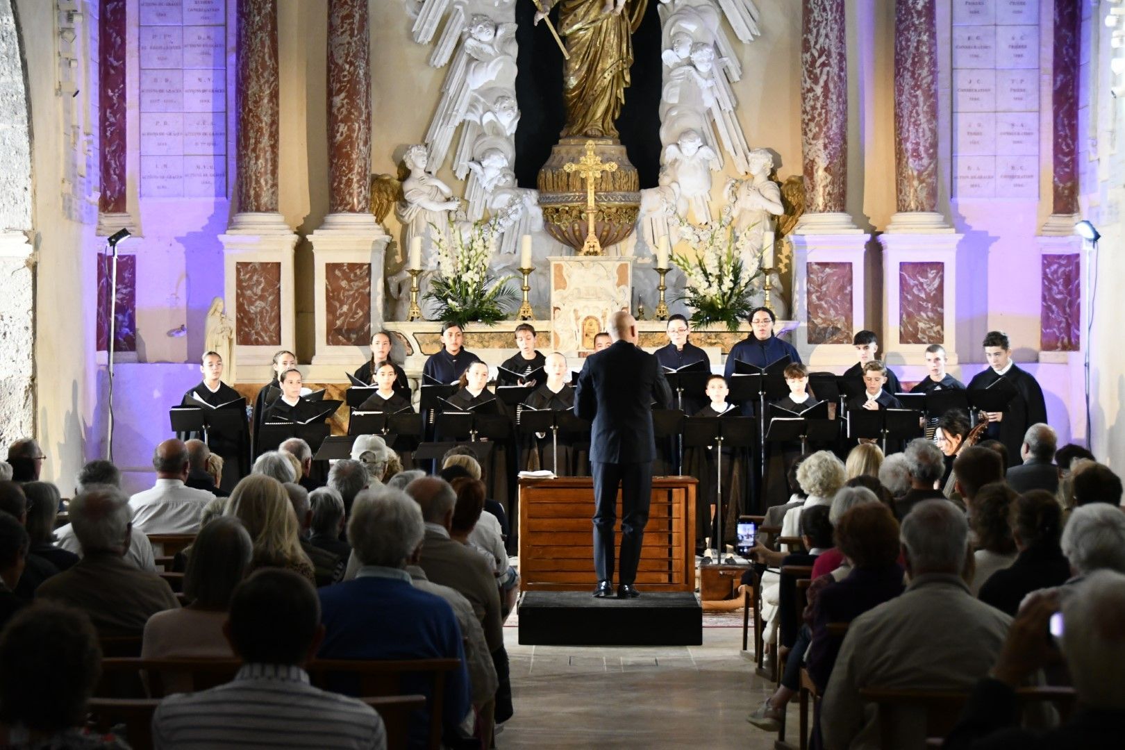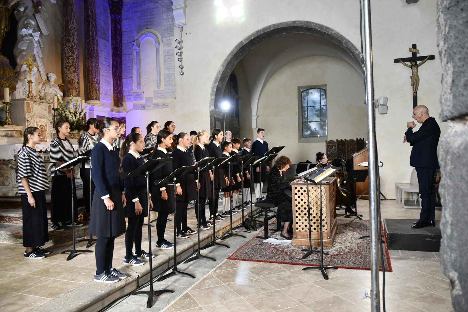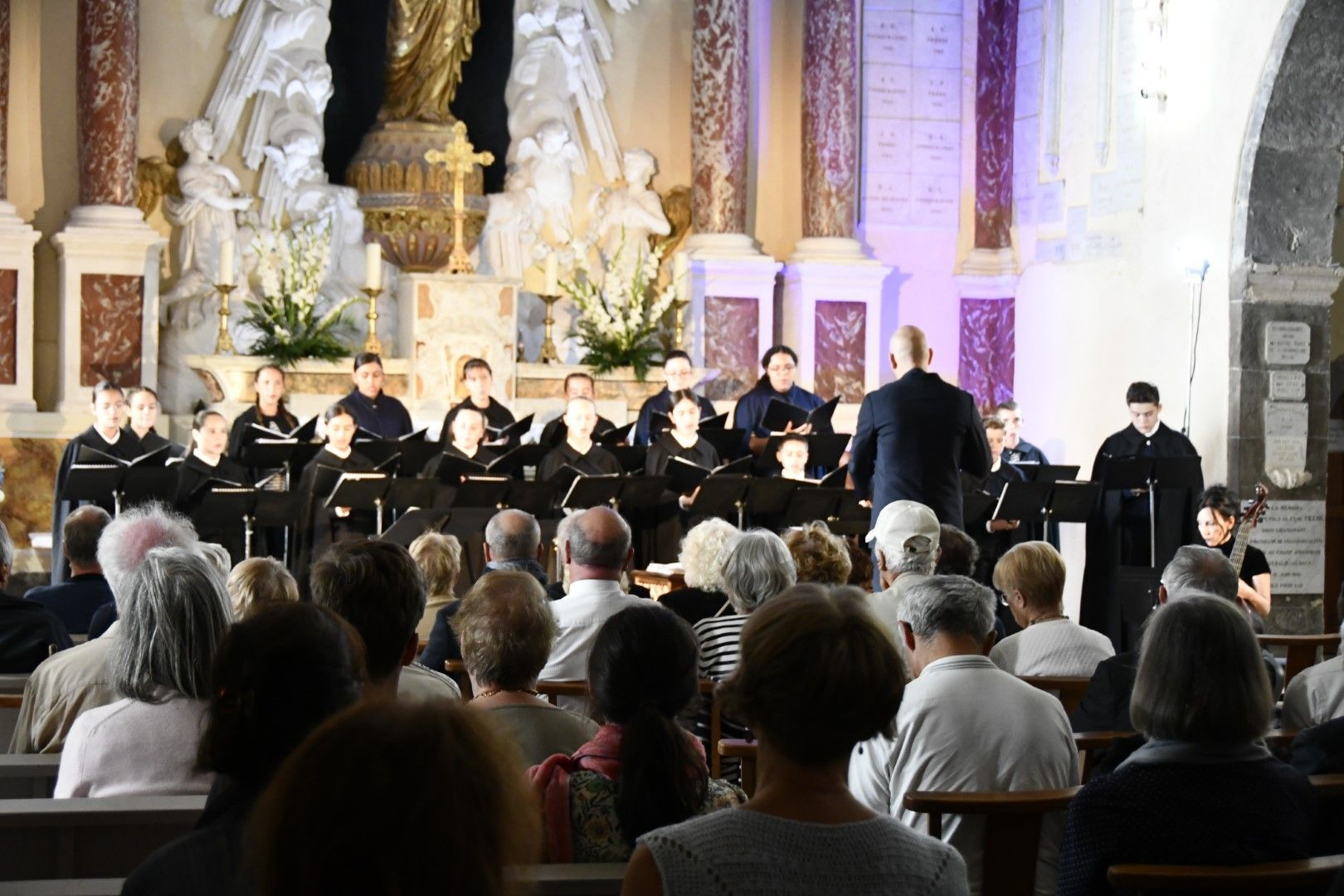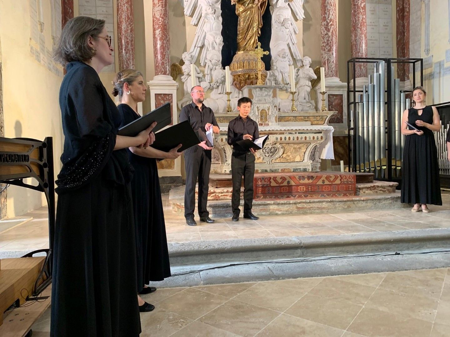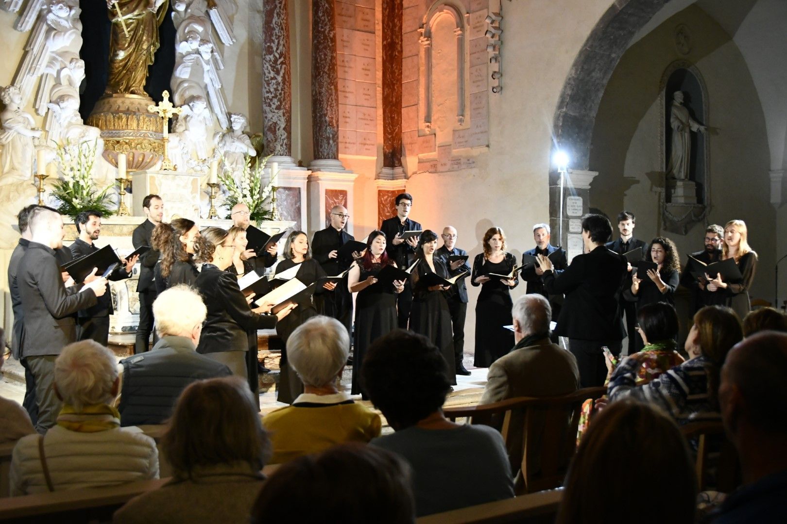 Quel plaisir de retrouver l’ensemble vocal Allégories sous la direction de son jeune chef, Stefano Bernabovi, qui nous avaient enchantés lors de la 1ère édition du Festival avec un très beau programme « Ad Te clamamus » qui explorait la richesse du répertoire marial avec notamment le sublime Stabat Mater de Caldara.